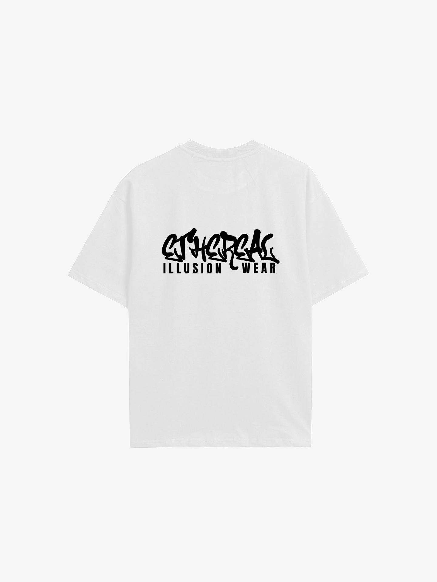The Illusion Ethereal oversized t-shirt offers a bold, minimalist design with oversized, comfortable fit. Perfect for any casual look, this unisex piece combines style and comfort effortlessly. Having ILLUSION and its subcategory ETHEREAL branding on front with DTF print.