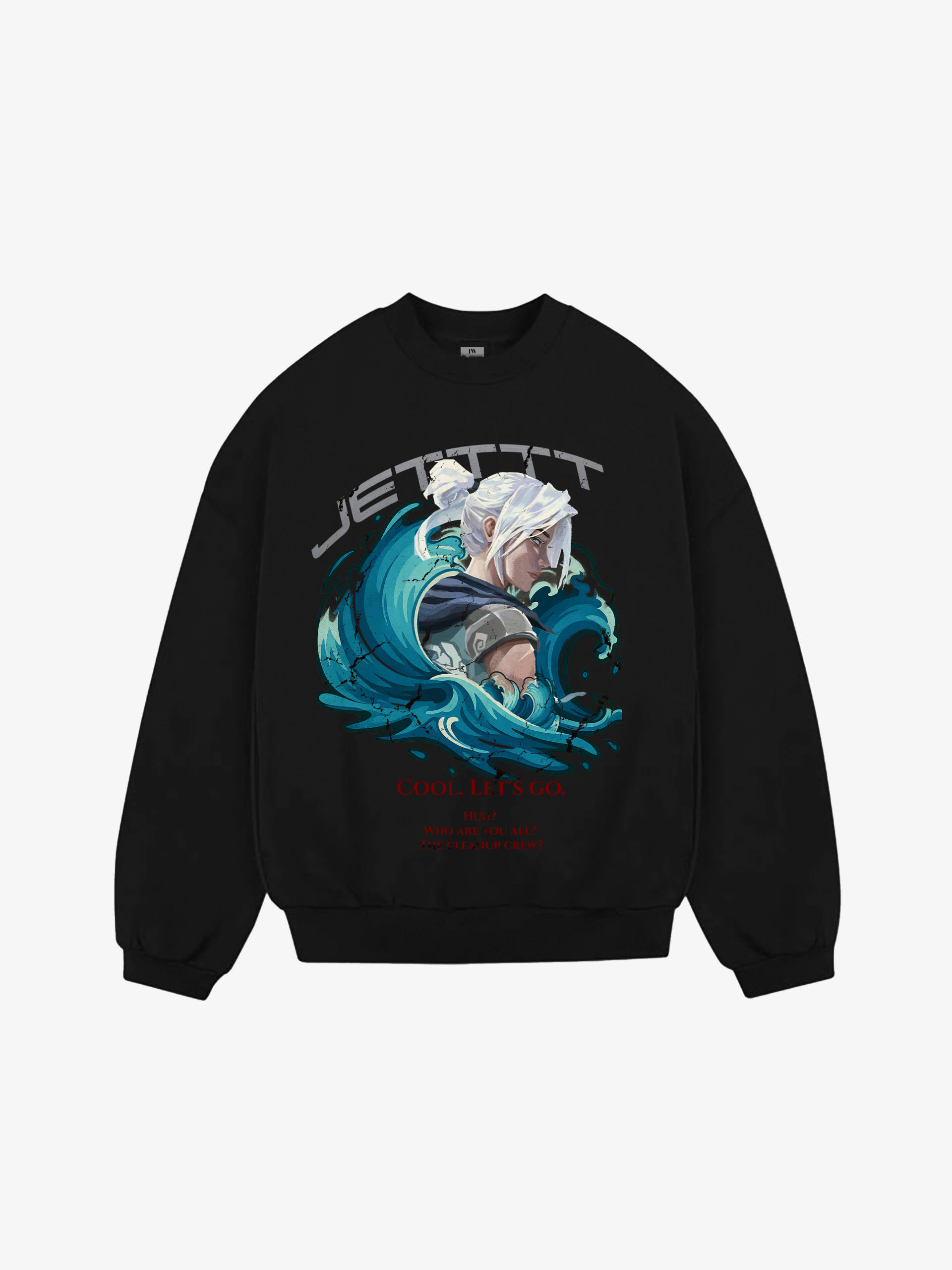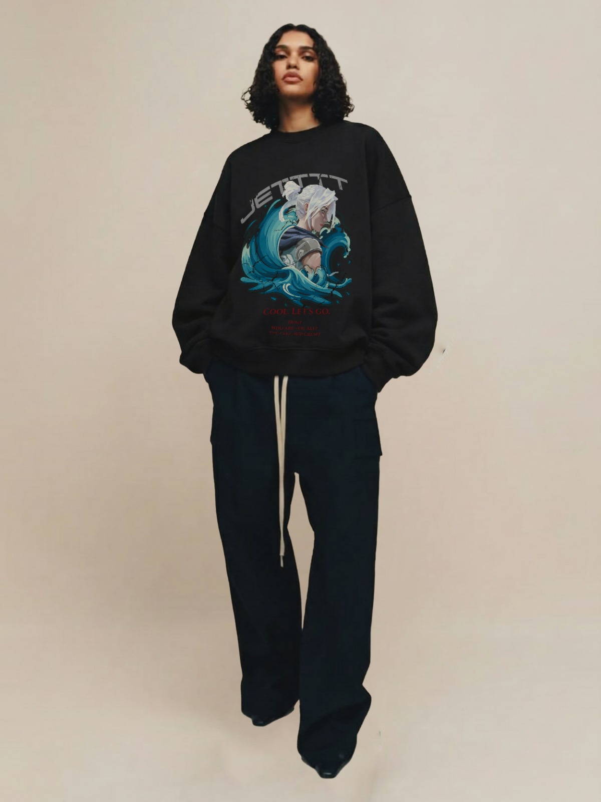 The Jett Valorant Sweatshirt brings a refined take on gaming culture through a minimal street-lux lens. Crafted from heavyweight 380GSM cotton, it offers a structured drape with a soft, comfortable interior.